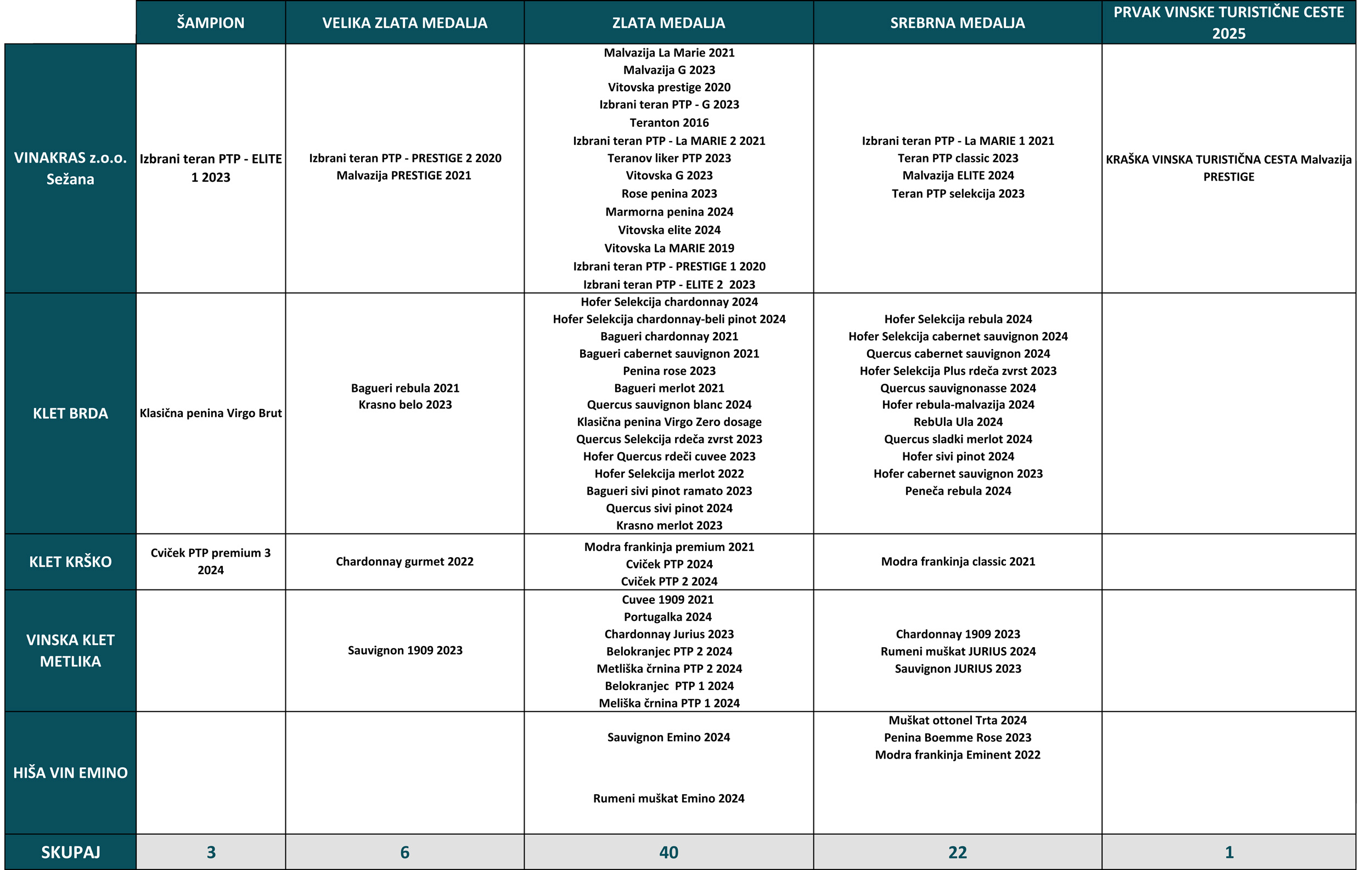 Podeljeni je bili tudi naziv prvaka vinsko turističnih ceste 2025, ki ga je prejela zadružna vinska klet: