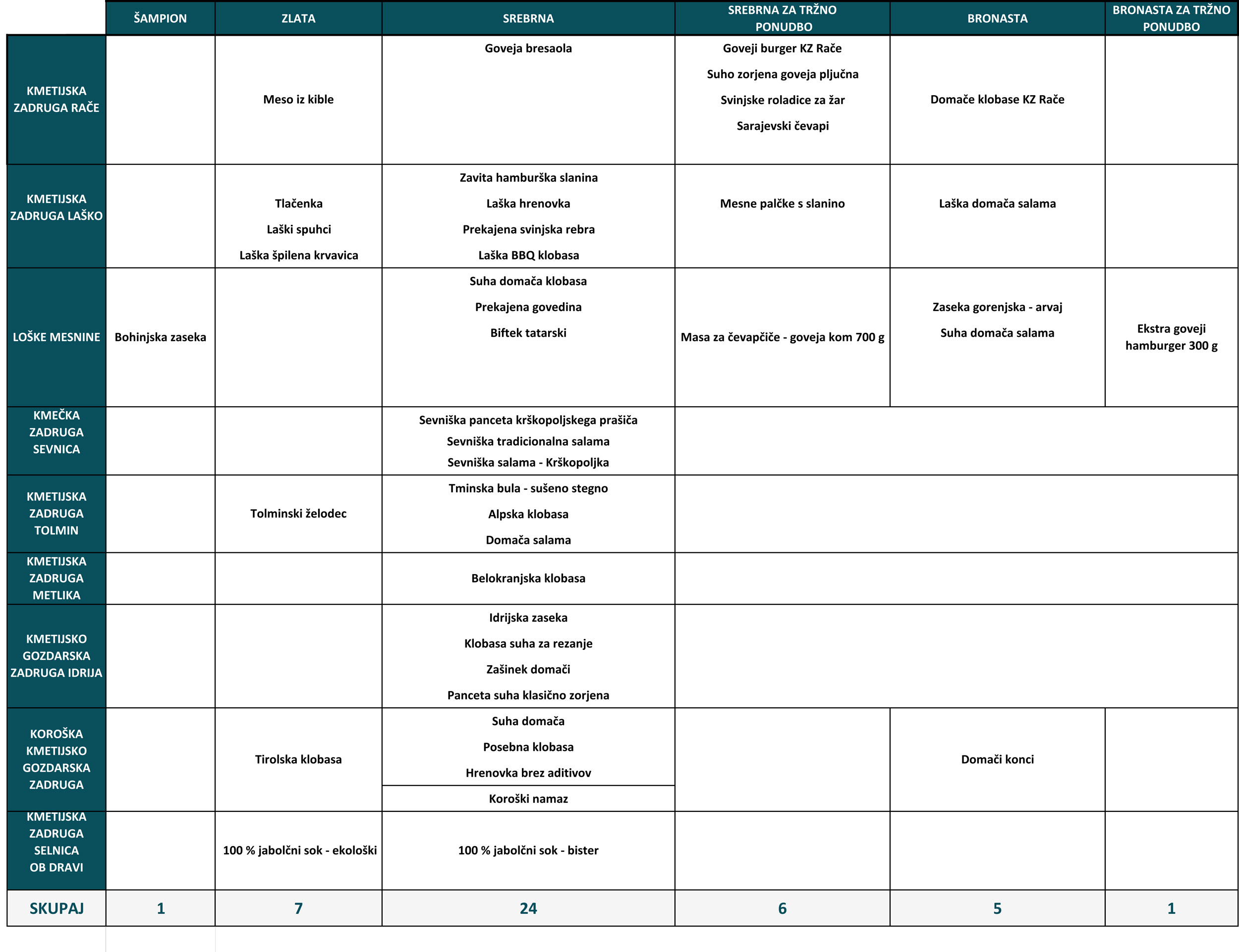 Na 46. mednarodnem ocenjevanju kakovosti mesa in mesnih izdelkov in 29. mednarodnem ocenjevanju sokov, brezalkoholnih pijač in embaliranih vod, ki je potekal pod okriljem 63. mednarodnega kmetijsko-živilskega sejma AGRA so prejele medalje sledeče zadruge: